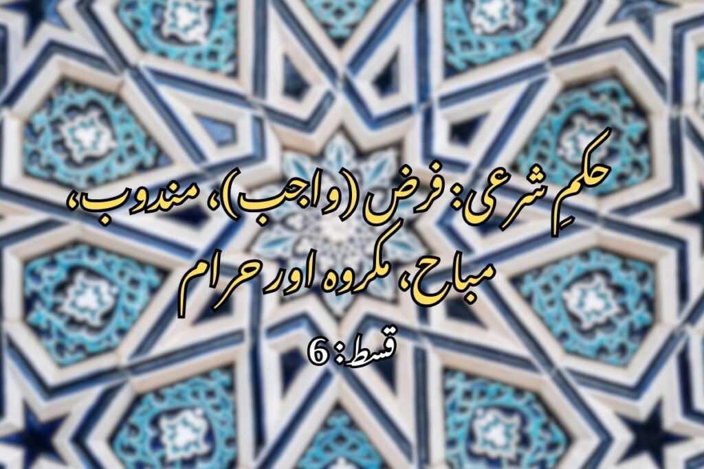 خطابِ تکلیف(حکمِ تکلیفی)میں یا تو کسی فعل کو کرنے کی طلب ہو گی یا کسی فعل کو ترک کرنے کی طلب یا پھر اس میں کسی فعل کو کرنے یا چھوڑنے کا اختیار دیا جائے گا۔ اس کے نتیجے میں احکامِ شرعیہ کی یہ پانچ اقسام منظرِ عام پر آتی ہیں : فرض، مندوب، مباح، مکروہ اور حرام۔ زندگی کے تمام افعال انہی میں محدود ہیں۔ اس کی تفصیل یہ ہے :